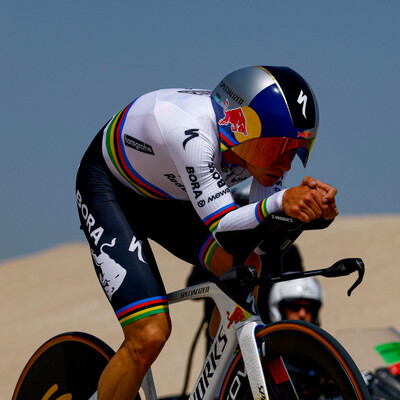 17.02.2026 | (rsn) - Remco Evenepoel (Red Bull - Bora - hansgrohe) hat das Zeitfahren der UAE Tour gewonnen. Der belgische Weltmeister und Olympiasieger im Kampf gegen die Uhr absolvierte die 12,2 Kilometer lange Strecke über Hudayriyat Island mit einem Schnitt von mehr als 56 km/h. Mit Joshua Tarling (Ineos...