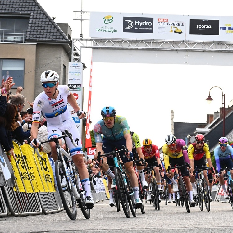 24.09.2025 | (rsn) – Nachdem Tim Merlier (Soudal – Quick-Step) zuletzt bei der Kampioenschap van Vlaanderen (1.1) als Dritter eine seiner wenigen Niederlagen in dieser Saison hatte einstecken müssen, konnte er sich am Mittwoch mit seinem 15. Saisonsieg zurückgemelden. Der Europameister war nach 198 flachen Kilometern in Lichtervelde deutlich schneller als Max Kanter (XDS – Astana), der sein 15. Top-Ten-Ergebnis der Saison und laut procyclingstats.com das 100. seiner Karriere verzeichnete.