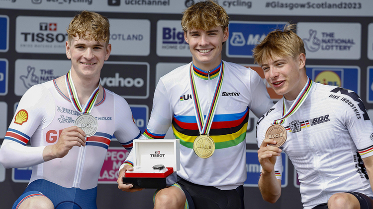 Bei der WM in Glasgow gewann Louis Leidert Bronze im Zeitfahren hinter Oscar Chamberlain und Ben Wiggins. | Foto: Cor Vos