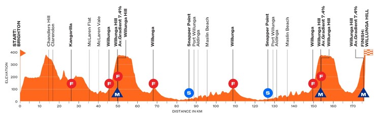 Mit 176 Kilometern und drei Anstiegen am Willunga Hill ist das vierte Teilstück die Königsetappe. Gleichzeitig ist es die erste und einzige Bergankunft der Rundfahrt, denn auf dem Willunga Hill endet der Tag auch. Nach dem Start in Brighton wird der Hügel mit seinen mehr als drei Kilometern bei 7,5 Prozent Steigung erstmals nach 50 Kilometern überquert. Dann bleibt es lange flach, ehe 20 Kilometer vor dem Ende die zweite Querung wartet. Nach ein paar Kilometern auf dem Plateau geht es wieder runter und dann dann sofort wieder hoch zum finalen Anstieg.
