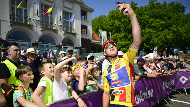 Führungstrikot? Naja, so halb: Teutenberg im Leibchen des besten Nachwuchsfahrers bei der Baloise Belgium Tour 2025. | Foto: Cor Vos