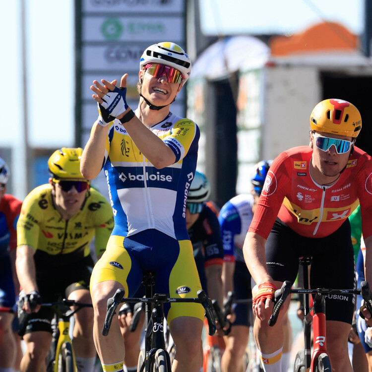 21.02.2026 | (rsn) – Ein neuer Stern am Sprinterhimmel ist auf der 4. Etappe der Andalusien-Rundfahrt (2.Pro) aufgegangen. Tom Crabbe (Flanders – Baloise) hat sich in einem leichten Bergaufsprint gegen Sören Waerenskjold (Uno-X Mobility) und Sandy Dujardin (TotalEnergies) durchgesetzt. Damit bewies der 20 Jahre alte Belgier, dass sein erster Sieg in einem Profifeld zum Auftakt des Etoile de Bessèges kein Zufall war. Auch auf der 3. Etappe hier bei der Ruta del Sol war er bereits als Fünfter über den Zielstrich gefahren.
