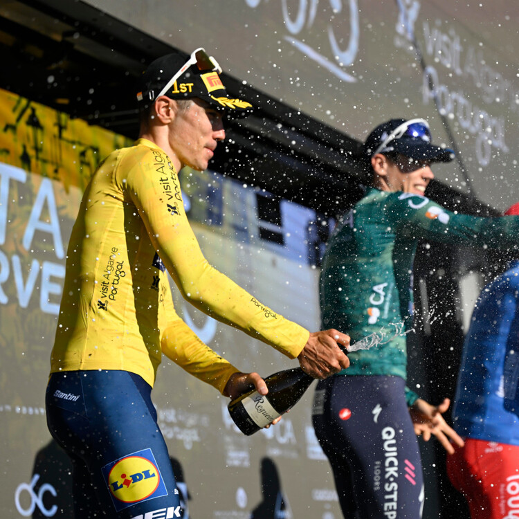 22.02.2026 | (rsn) - Es war der Tag von Juan Ayuso (Lidl - Trek) bei der Schlussetappe der Algarve-Rundfahrt. Der Spanier feierte nach zwei zweiten Plätzen nicht nur den erhofften Etappensieg, sondern war dadurch auch nicht mehr von der Spitze der Gesamtwertung zu verdrängen. Während Ayuso ein konservatives Rennen hinlegte, zeigten sich die deutschen Akteure offensivstark. Zunächst war Maximilian Schachmann (Soudal - Quick-Step) an der Spitze des Rennens zu finden. Erst ein Sturz bremste ihn aus. Danach übernahm Florian Lipowitz (Red Bull - Bora - hansgrohe) das Kommando und testete seine Beine. Im Schlussanstieg holten ihn die Favoriten zurück, seinen achten Platz in der Gesamtwertung verteidigte er aber trotzdem.