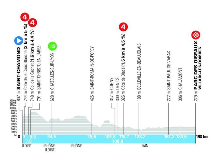 11.06.2026: 5. Etappe, Saint-Chamond - Parc des Oiseaux - Villars-les-Dom, 198,0 km