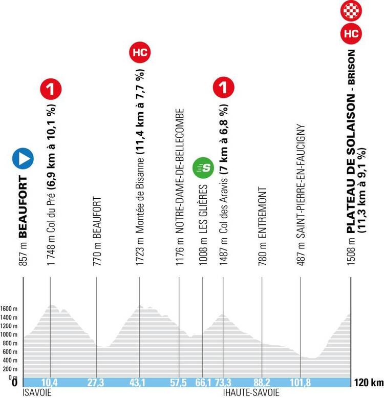 14.06.2026: 8. Etappe, Beaufort - Plateau de Solaison - Brison, 120,0 km