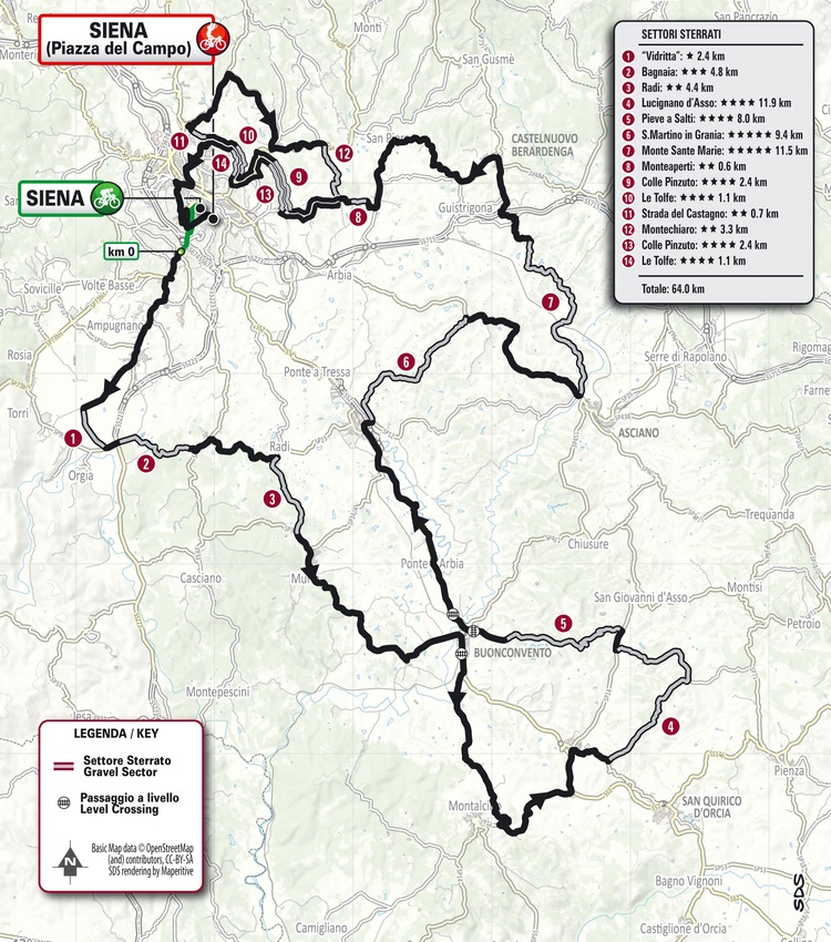 In den vergangenen Jahren packten die Organisatoren immer mehr Schwierigkeiten in den italienischen Frühjahrsklassiker Strade Bianche hinein. Zur am 7. März anstehenden 20. Ausgabe des über die weißen Naturpisten der Toskana führenden Eintagesrennens geht RCS Sport nun wieder einige Schritte zurück und reduziert die Distanz um 14 Kilometer und – wichtiger noch – die Anzahl der Schotterabschnitte um zwei auf 14 statt bisher 16. [weiter]