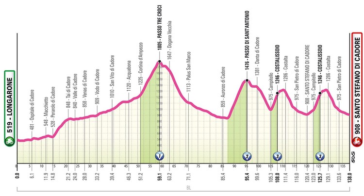 03.06.2026: 5. Etappe, Longarone - Santo Stefano di Cadore, 138,0 km