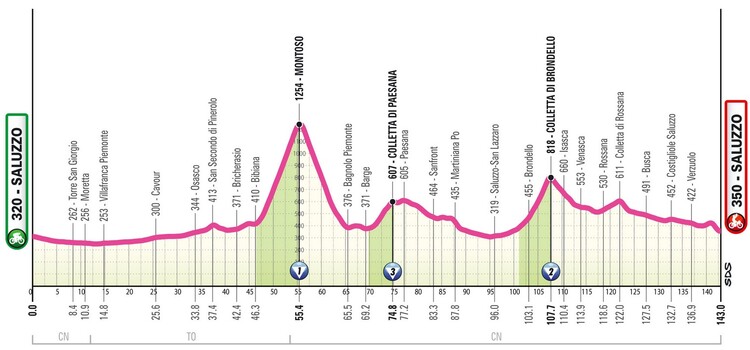 07.06.2026: 9. Etappe, Saluzzo - Saluzzo, 143,0 km