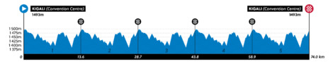 Das Straßenrennen der Juniorinnen führt über fünf Runden auf dem 15,1 Kilometer langen Rundkurs von Kigali. Der beinhaltet zwei Hauptanstiege: den Cote de Kigali Golf (0,8 km bei 8,1%) nach etwa halber Rundenlänge und nach einer rasanten Abfahrt anschließend den über Kopfsteinpflaster führenden Anstieg von Kimihurura (1,3 km bei 6,3%), der kurz vor der Flamme Rouge endet. Die letzten rund 500 Meter vor dem Ziel am Convention Center steigen noch einmal unangenehm an.
